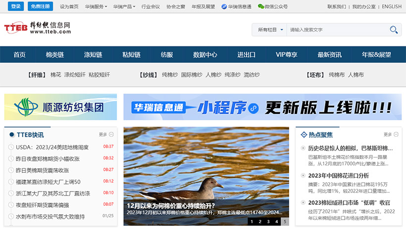 輸入m.gayhome.cn 或者瀏覽器搜索“棉紡織信息網(wǎng)”進(jìn)入網(wǎng)站首頁。網(wǎng)站包含滌短、粘短、棉花及其下游紗線、坯布等產(chǎn)業(yè)鏈信息。
